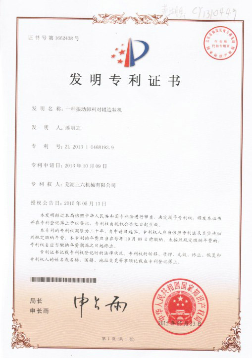發(fā)明專利證書